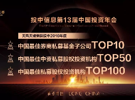 2019年4月17日,由投中信息主辦為期三天的第13屆中國投資年度峰會(huì)在上海開幕,在一年一度的“投中榜”中,天風(fēng)天睿再次上榜“2018年度中國最佳券商私募子公司TOP10”,并同時(shí)榮登...